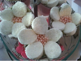 We recently did a dessert table with flowers as the theme, to welcome little Alexandria. We made a flower wall back drop, flower cupcakes, flower brownie pops, and even strawberry shortcakes with a cute flower spoon. For more information email is at 5210.events@gmail.com